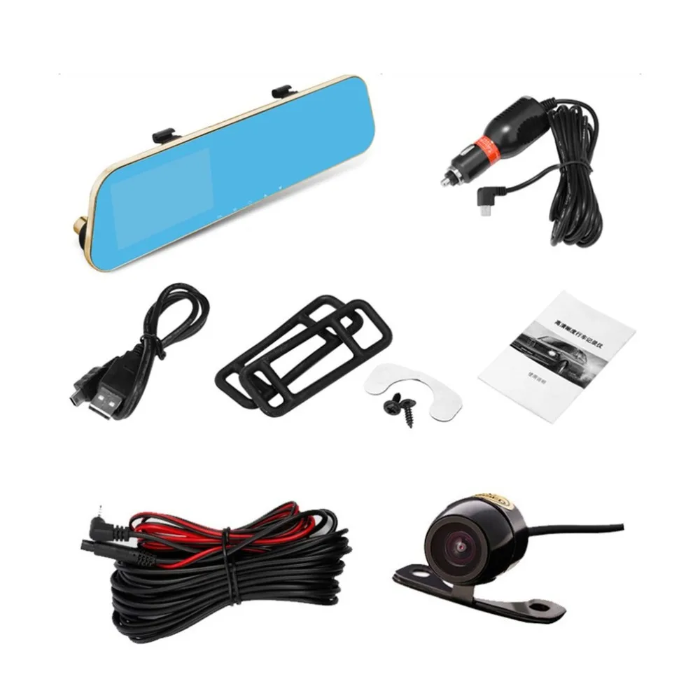 Günstige Kaufen 4,3 zoll Full HD 1080 p 140 Grad Auto Fahrzeug DVR Rückspiegel Mit Dual Objektiv Kamera Nachtsicht dash Cam Recorder Preise Online.