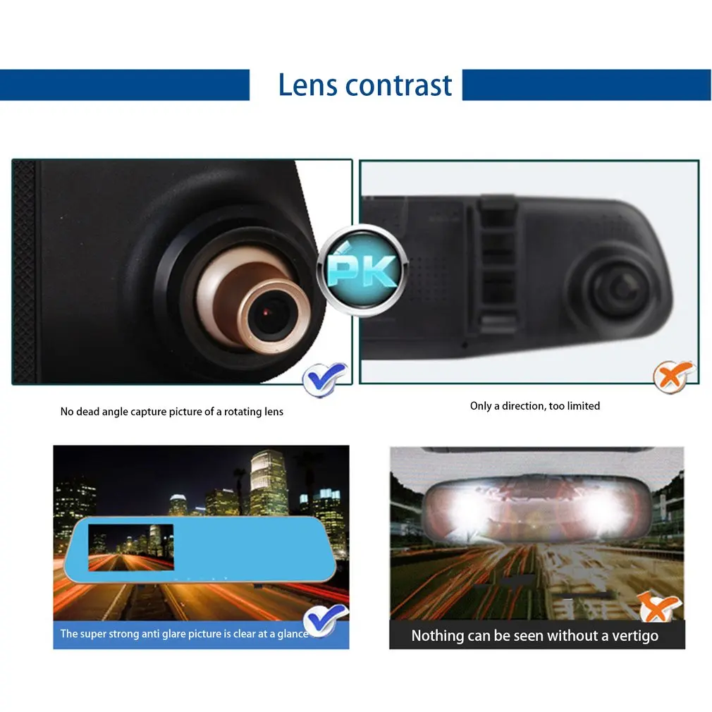 Kaufen Billig 4,3 zoll Full HD 1080 p 140 Grad Auto Fahrzeug DVR Rückspiegel Mit Dual Objektiv Kamera Nachtsicht dash Cam Recorder Preise Online