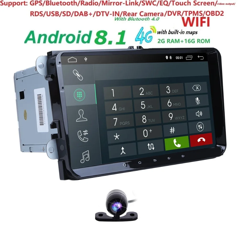 Kaufen Günstig 2Din 4G Android8.1 Auto Stereo Radio 9 Zoll HD 1024*600 Bildschirm QuadCore Monitor GPS Für V W passat Golf Polo CC J etta Skoda Sitz Preise Online