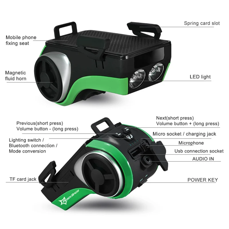 Günstige Kaufen 5 in 1 Wasserdichte Fahrrad Computer Telefon Halter Bluetooth Audio Player 4400 mah Power Bank Glocke Licht Radfahren Zubehör RK0044 Preise Online