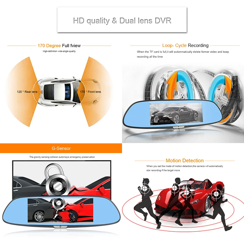 Kaufen Günstig 7 \"Touchscreen auto kamera rückspiegel auto dvrs autos dvr dual lens recorder registrator volle hd1080p nachtsicht dash cam Preise Online.