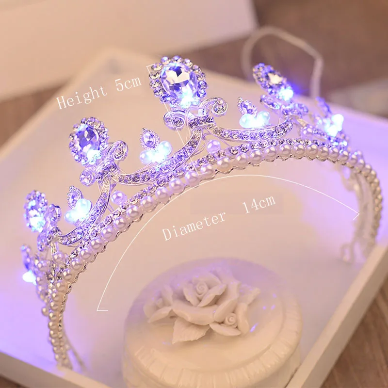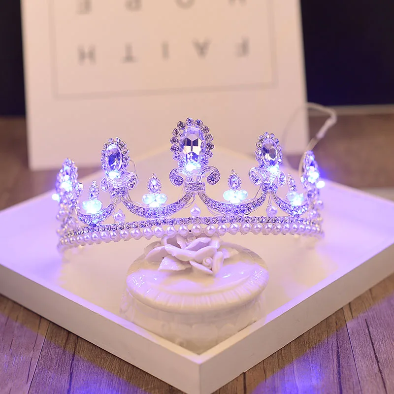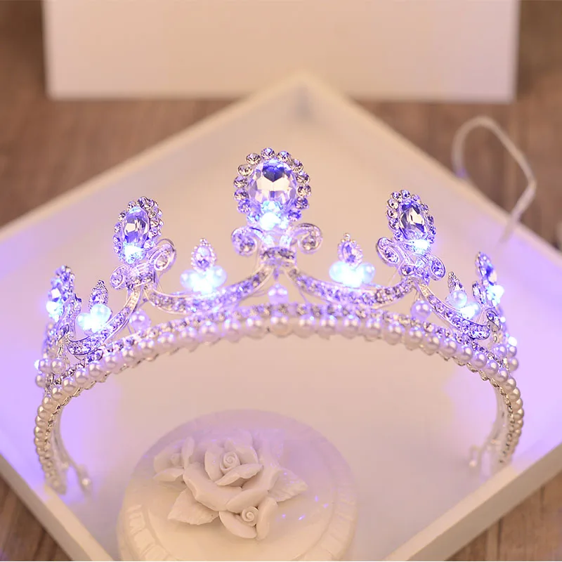 Kaufen Billig Barock Licht Kronen Glitter Nachahmung Perlen Königin Prinzessin Tiara Braut Glowing Crown Mädchen Party Hochzeit Frauen Haar accessoire Preise Online.