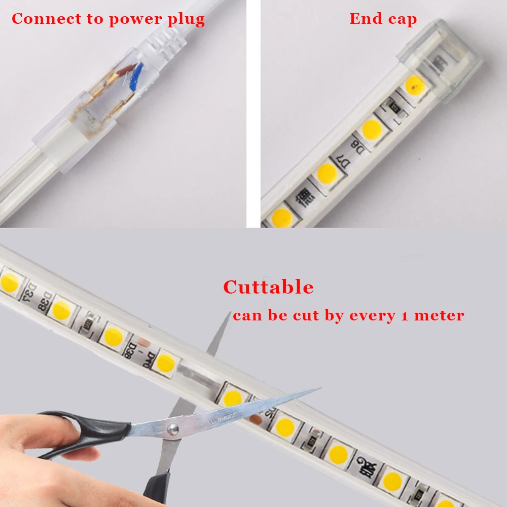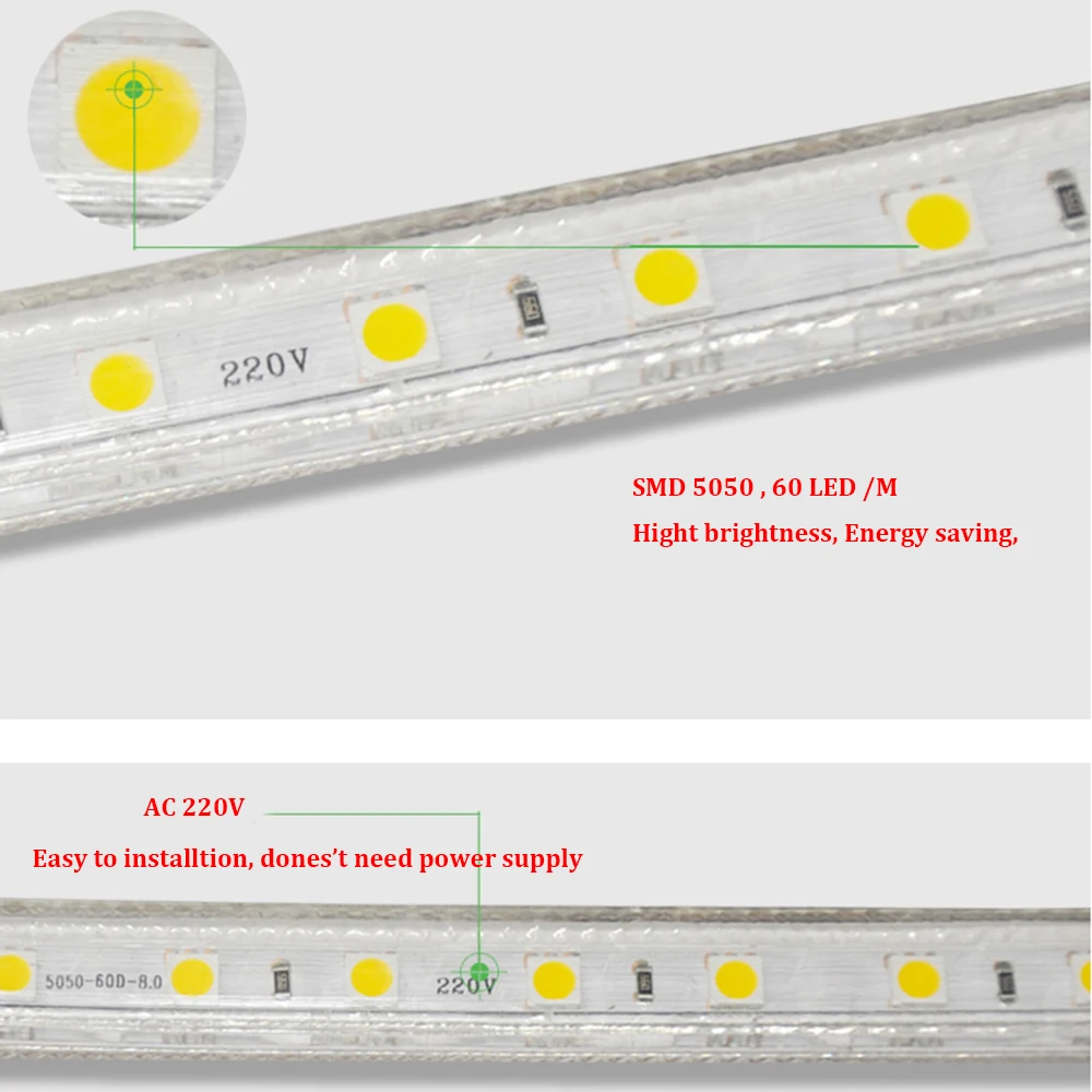 . Kaufen Billig Tanbaby 220 v SMD 5050 LED Streifen licht 60 LED M IP67 Wasserdichte Outdoor Indoor Dekoration Beleuchtung Flexible Band band + Eu stecker Preise Online.
