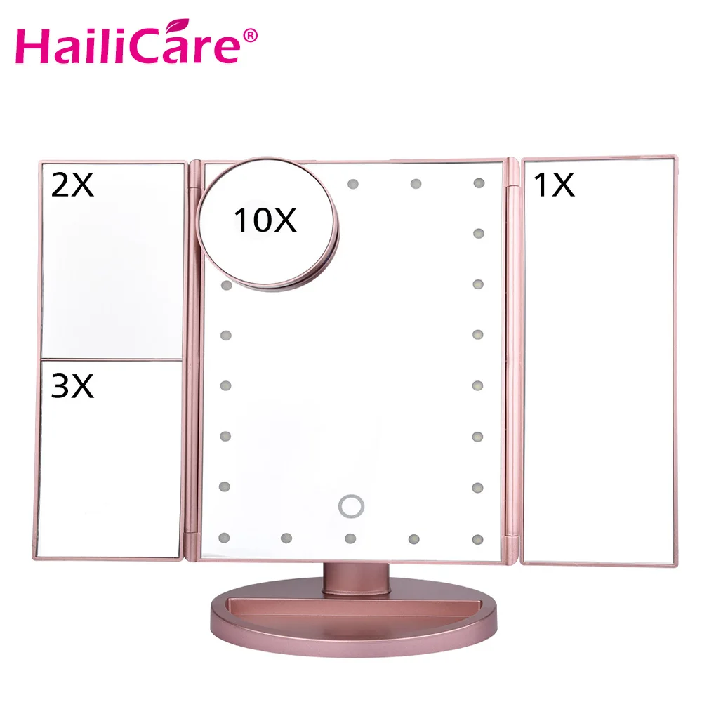 Günstige Kaufen 22 LED Touchscreen Make Up Spiegel 1X 2X 3X 10X Vergrößerungs Spiegel 4 in 1 Tri Gefaltet Desktop Spiegel lichter Gesundheit Schönheit Werkzeug Preise Online.