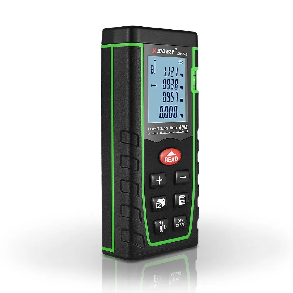 . Kaufen Billig SNDWAY 40 mt Digitale laser entfernungsmesser 131ft handheld abstand meter trena Laser range finder Bereich volumen Winkel band messen werkzeuge Preise Online.