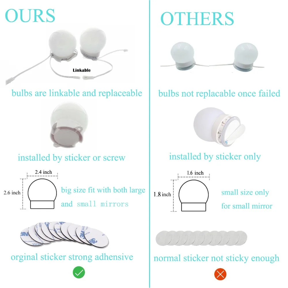 Kaufen Billig Make up Spiegel Led leuchten 10 Hollywood Eitelkeit Glühbirnen für Dressing Tisch mit Dimmer und Stecker in, Verknüpfbar, spiegel nicht enthalten Preise Online