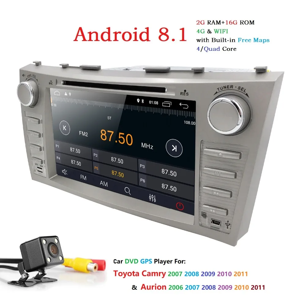 Kaufen Günstig Autoradio 2 Din Android 8.1 Auto DVD Player Für Toyota Camry 2007 2008 2009 2010 2011 Aurion 2006 Kopf einheit Band recorder Wifi SWC Preise Online