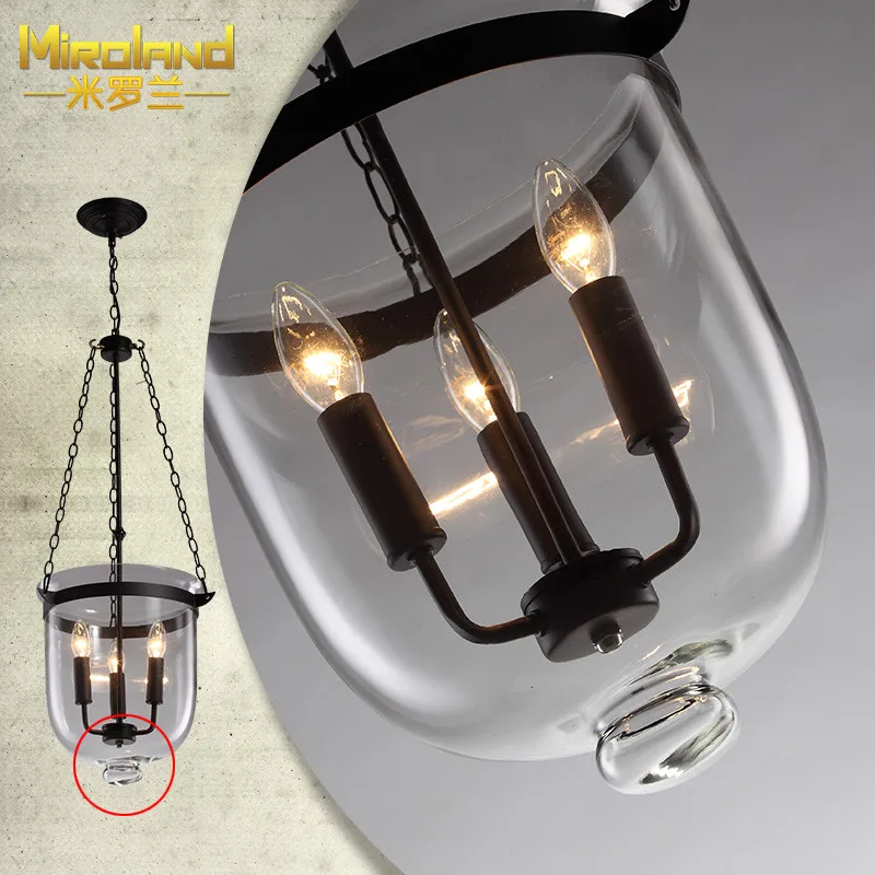 Kaufen Billig Amerikanischen Land Schwarz Rost Farbe Klar Glas Foyer Anhänger Licht Retro Esszimmer Dekoration Licht D250MM 350 MM freies Verschiffen Preise Online.