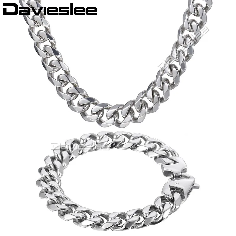 . Billige Kaufen Daiveslee Poliert Herren Halskette Armband Schmuck Set 316L Edelstahl Kette Silber Ton Curb Cuban Link DHS43 Preise Online.