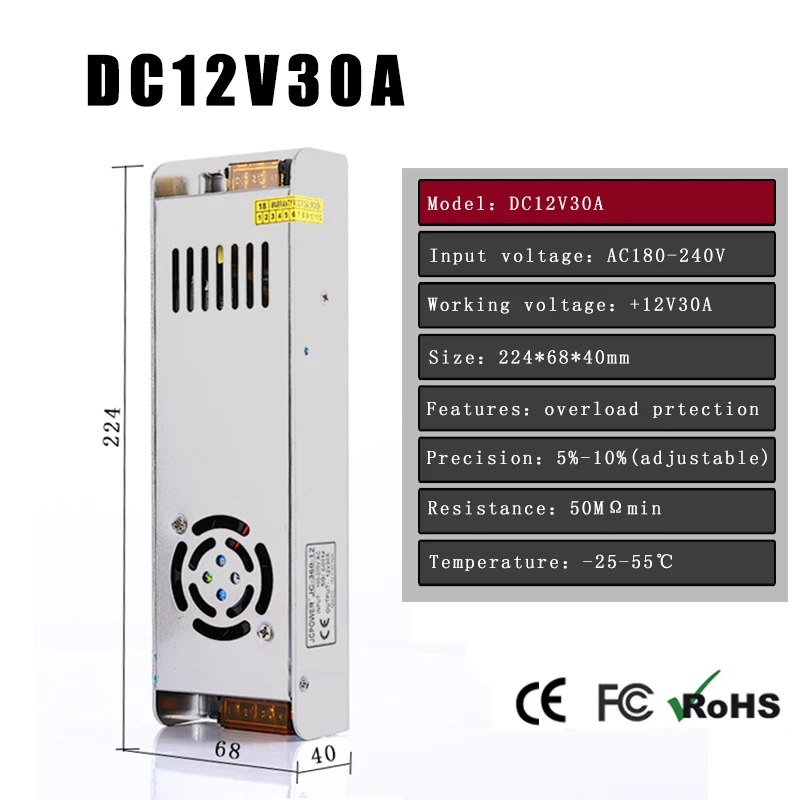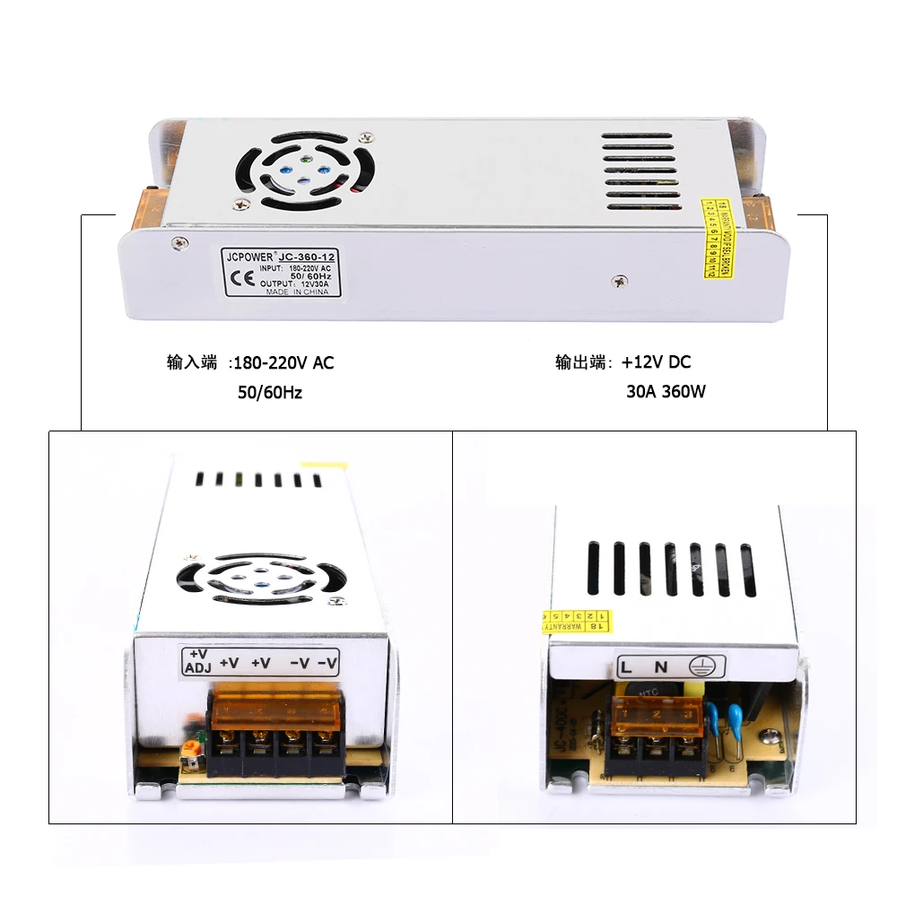 . Kaufen Günstig JCPOWER dünne 12 v 30A 360 watt Spannung Transformator Schalter Netzteil für Led Streifen oder control switch LED display CE zertifizierung Preise Online.