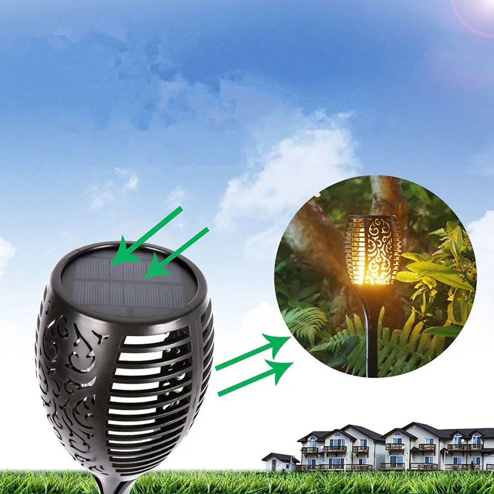 Günstige Kaufen Wasserdichte LED Licht Solar Flamme Flackern Taschenlampe Garten Led licht IP65 96 LEDs Freien Landschaft Dekoration solar flamme lampe Preise Online.