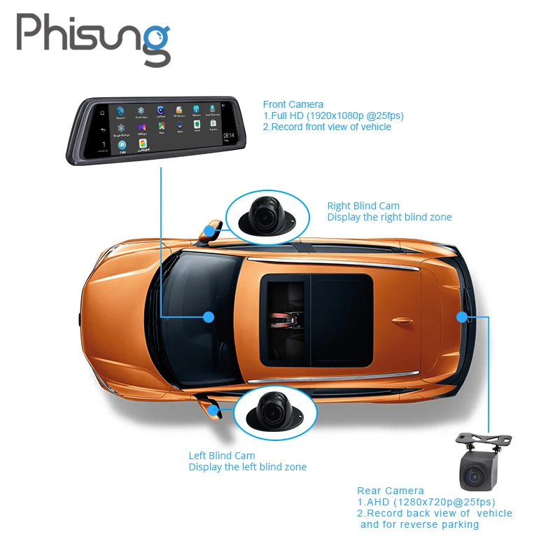 . Kaufen Günstig Phisung V9 Plus mit 4CH Kameras objektiv 10 \"Touch Android Navi auto kamera mit gps rückspiegel dvr stick recorder ADAS WIFI Preise Online.