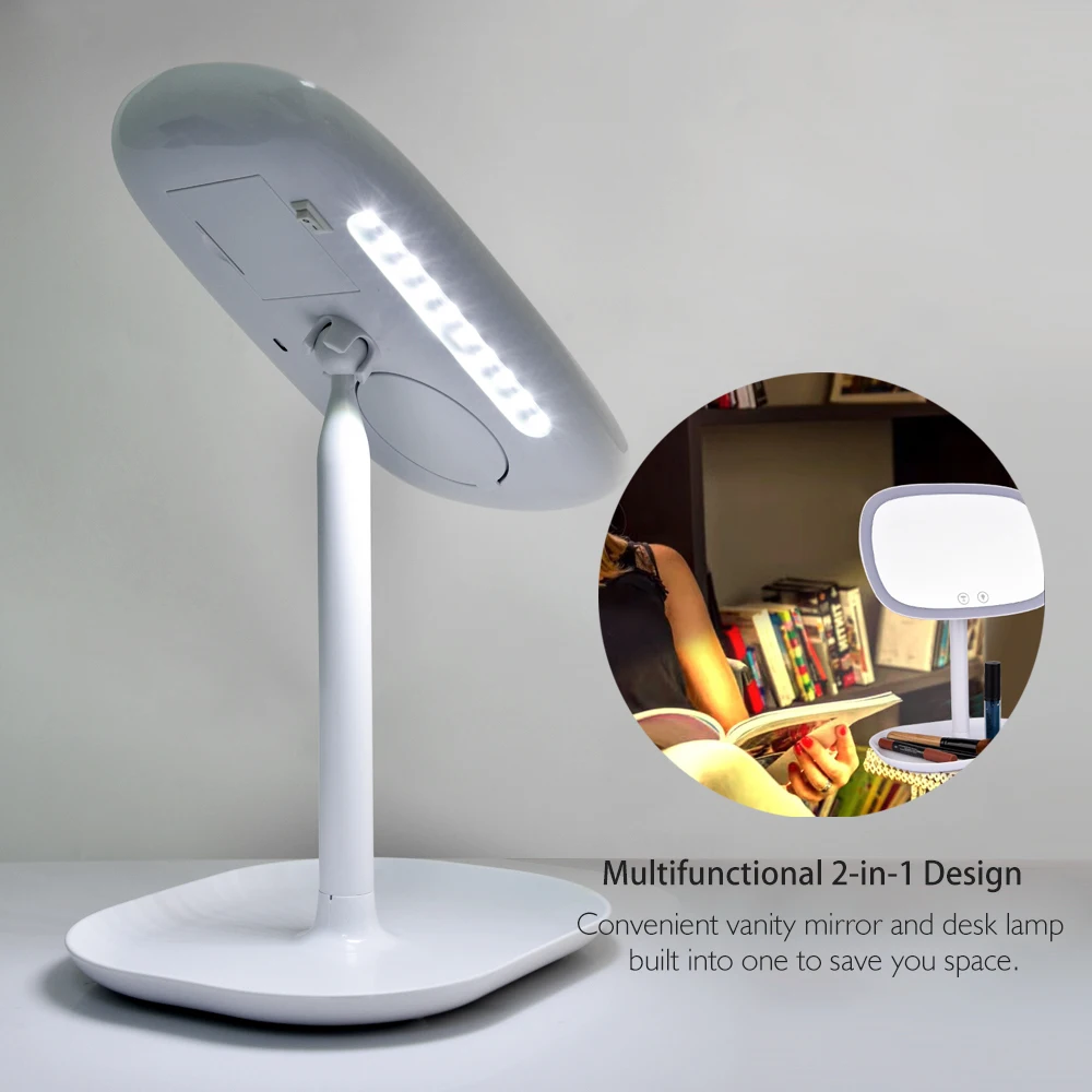 . Kaufen Billig USB Ladung FÜHRTE Make Up Spiegel 360 grad Drehbare mit 10X Vergrößerungs Touchscreen Eitelkeit Platz Schreibtisch Stehen Kosmetik Spiegel Preise Online.
