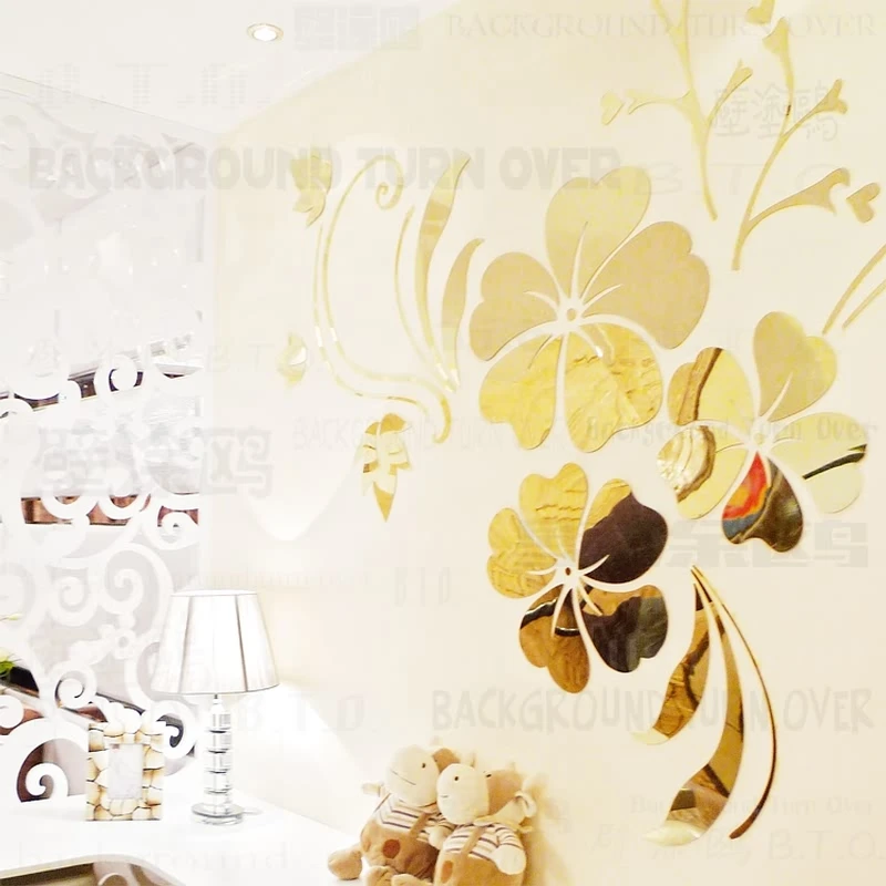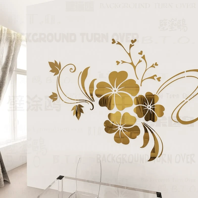 Kaufen Günstig Heißer verkauf DIY frühling natur hibiskus blume spiegel dekorative wandaufkleber home decor 3d wanddekoration wohnzimmer aufkleber wandbild R076 Preise Online.